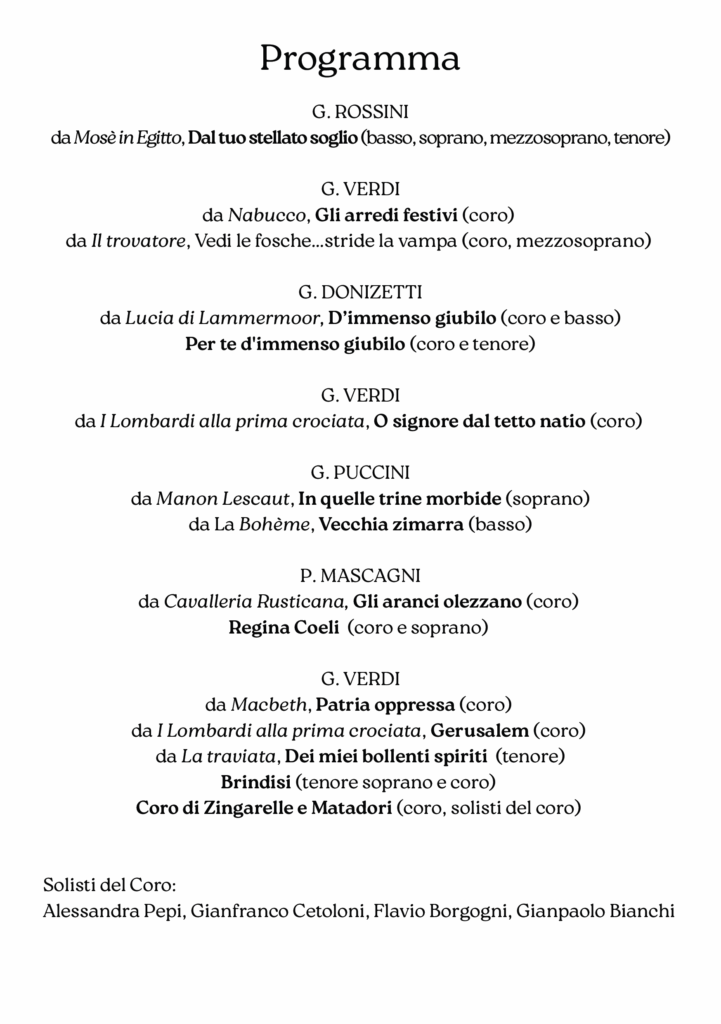 I solisti del coro : Alessandra Pepi, Gianfranco Cetoloni, Flavio Borgogni e Ginpaolo Bianchi.